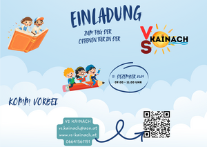 WeiterlesenWir laden herzlich zu unserem Tag der offenen Tür am Donnerstag, 11. Dezember, von 09:00 bis 11:00 Uhr in der VS Kainach ein.