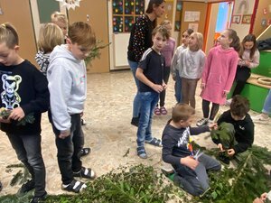 Gemeinsames Adventkranzbinden an der VS Kainach