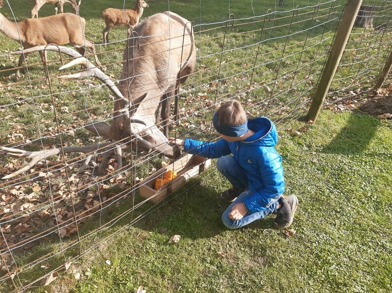Auch das übrige Kürbisfleisch wurde sinnvoll verwendet: Ein Hirsch aus dem nahegelegenen Rotwildgehege kam in den Genuss eines besonderen Leckerbissens – und zeigte deutlich, dass ihm das herbstliche Gemüse ebenfalls gut schmeckt!
