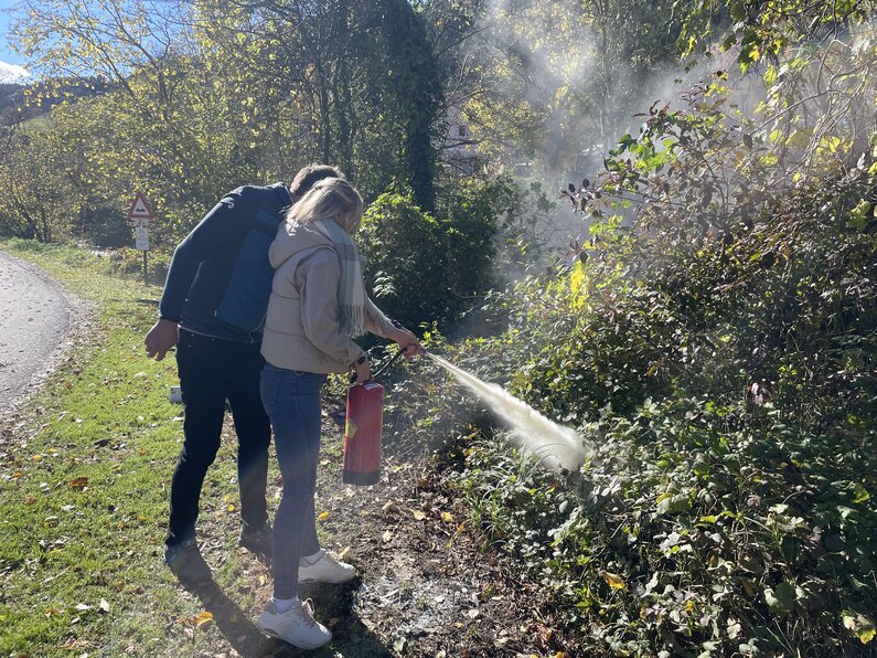 Nach Schulschluss nahmen die Lehrpersonen der Volksschule Kainach und Kindergartenleiterin Regina Jauk an einer praktischen Schulung mit dem Feuerlöscher teil, die von Hauptbrandinspektor Wolfgang Scherz durchgeführt wurde. Dabei konnten alle Beteiligten wertvolle Erfahrungen im richtigen Umgang mit dem Feuerlöscher sammeln.