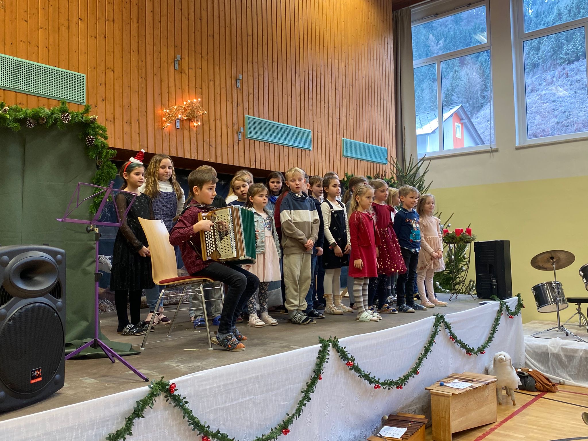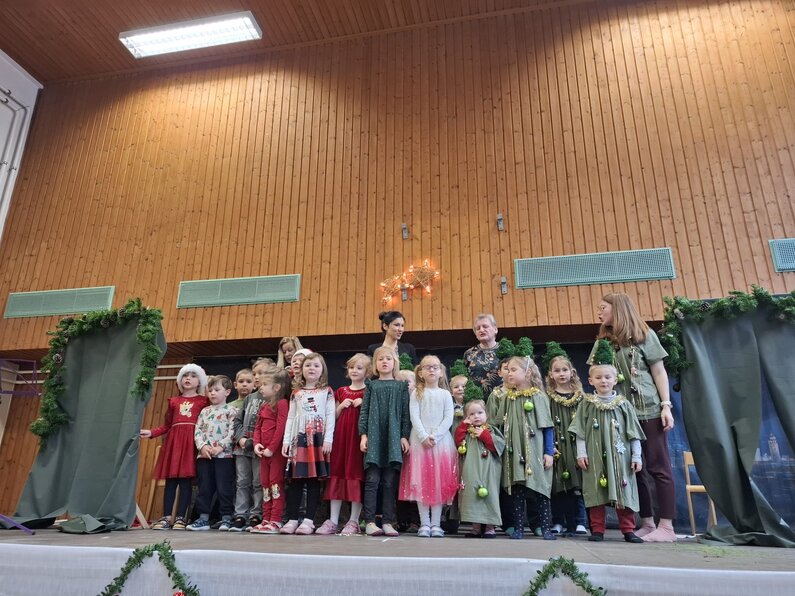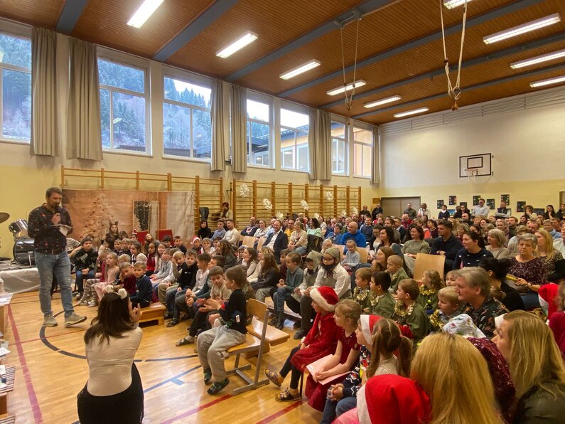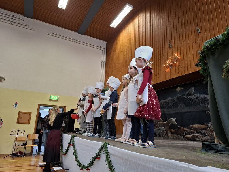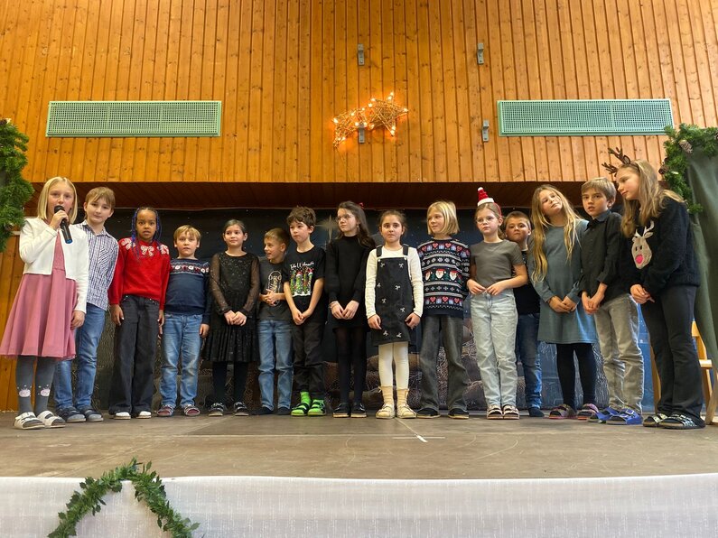 Die Kinder begeisterten das Publikum mit einem abwechslungsreichen Programm: musikalische Darbietungen, Theaterstücke, Gedichte und viele weitere Beiträge machten die Weihnachtsfeier zu einem ganz besonderen Erlebnis. Gemeinsam mit dem Kindergarten, der ebenfalls drei Auftritte gestaltete, entstand ein stimmiges und liebevoll vorbereitetes Gesamtprogramm.