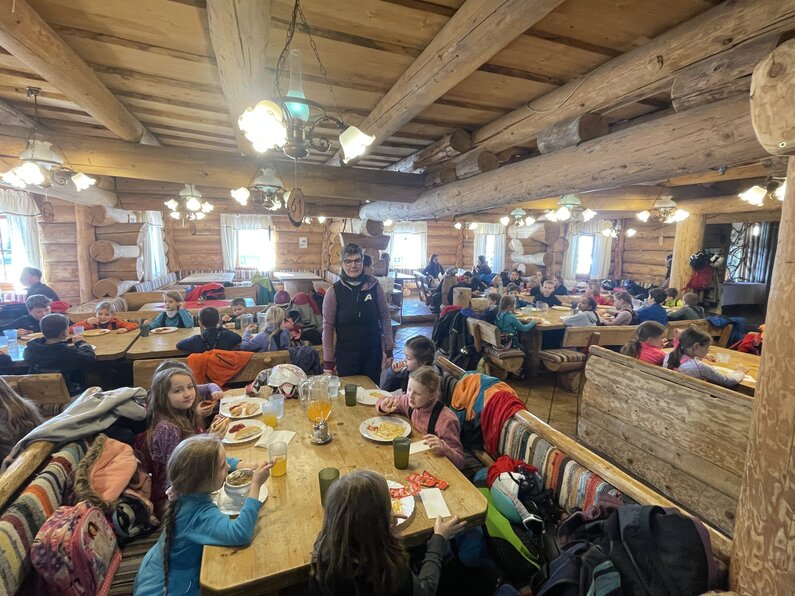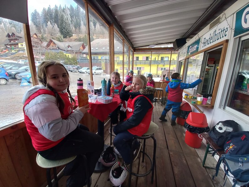 Nach den ersten Stunden im Schnee stärkten sich alle an beiden Tagen bei einem warmen Mittagessen im Moasterhaus, das großzügig von der Firma Green Grass Hatzl sowie der Tischlerei Scherz Herbert gesponsert wurde. Frisch gestärkt ging es anschließend wieder zurück auf die Pisten, wo bis 14:30 Uhr fleißig Ski gefahren und gerodelt wurde, bevor jeweils die Heimreise angetreten wurde.