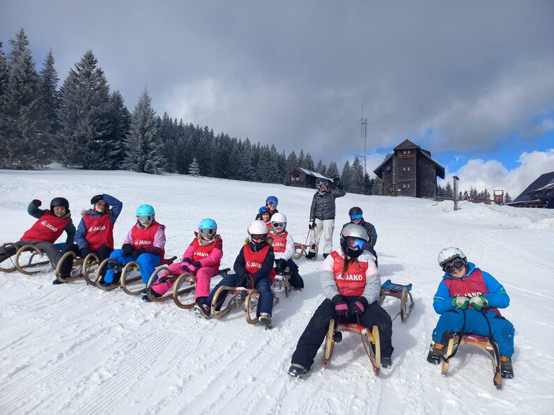 Die Kinder hatten großen Spaß auf den unterschiedlichsten Pisten und konnten – je nach Fahrniveau – wertvolle Erfahrungen im Skifahren oder beim Rodeln sammeln. Begleitet wurden sie dabei von engagierten Begleitschilehrerinnen und -lehrern. Besonders freuten wir uns über die Unterstützung unserer ehemaligen Direktorin Susanne Mayer sowie von Lena Fasching, die ebenfalls als Begleitschilehrerin mitwirkte. Ein großer Dank gilt beiden für ihren Einsatz!